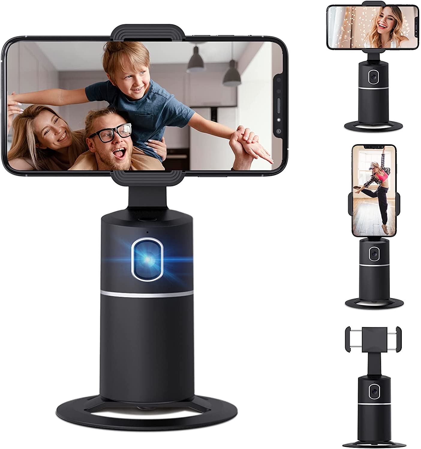 - Face Tracking AND Intelligent Shooting: This face tracking phone holder adopts AI computing system that can automatically recognize and track your face or body, 360° rotate steadily with your movement. Free your hands for video calls and live streaming.